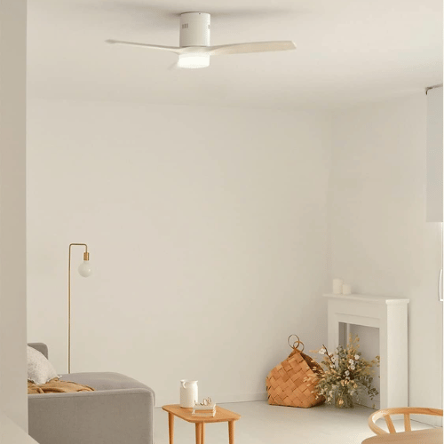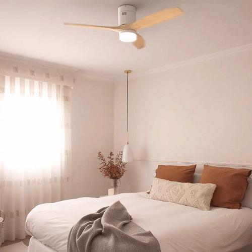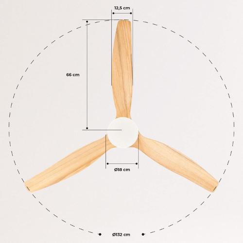 El ventilador de techo que has elegido reúne muchas de las características más buscadas hoy en día: silencio absoluto en velocidad baja, buena eficiencia energética, iluminación LED ajustable, función reversible verano/invierno, temporizador y mando a distancia. Su diseño combina estética moderna con un acabado en efecto madera clara o blanco que encaja fácilmente con múltiples estilos de decoración.